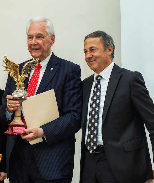 Planning accelerated in 2015 when de Masi came to the IBEW construction conference on the heels of a trip Hill made to Italy to receive one of its government’s highest honors, the Golden Eagle award. He was the first American recipient, honored in part for his support of Italian unionists and his overtures to Italian companies operating in the United States.