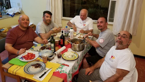 Meals were a bonding opportunity for the New Yorkers and the Italian electricians, who also served as hosts. Each day, they prepared breakfast, lunch and dinner from scratch for themselves and their guests in a shared home near the hospital. |