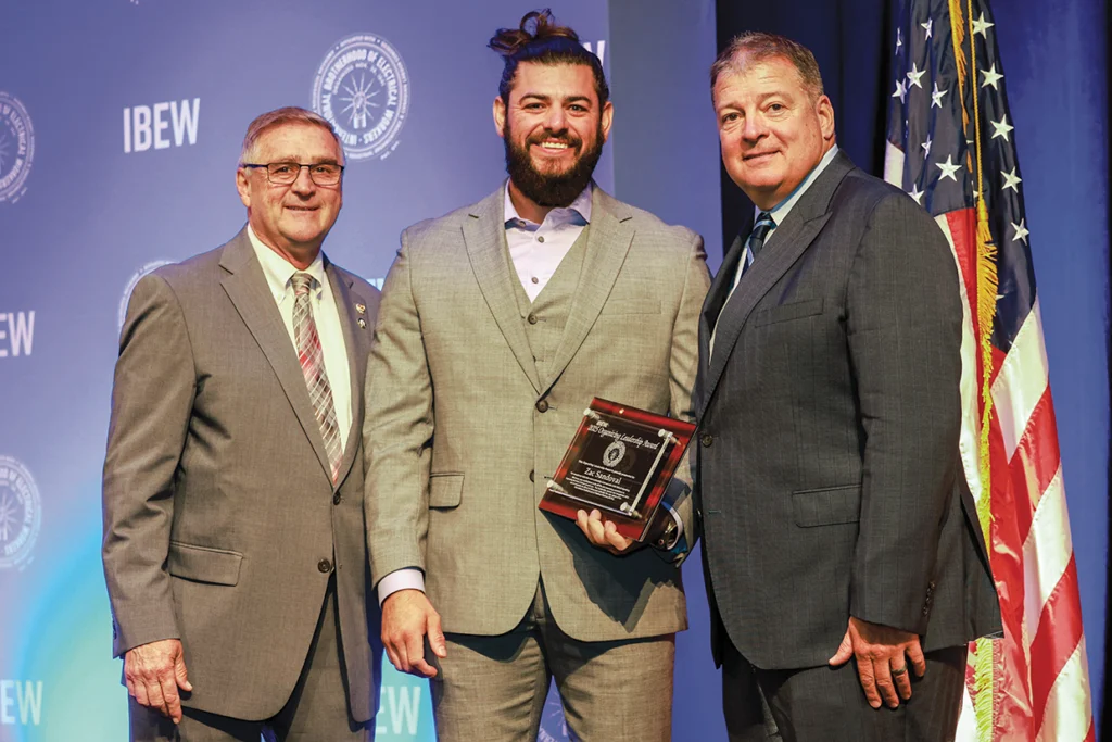 Also honored at the conference was Tulsa, Okla., Local 1002’s Zac Sandoval, who was organized into the IBEW nearly 12 years ago. Ever since, the Outside Construction Rank-and-File Organizer of the Year has developed a reputation for sharing his love of the Brotherhood — and his dual expertise as a construction lineman and journeyman lineman — with his IBEW co-workers as well as the nonunion men and women he encounters.