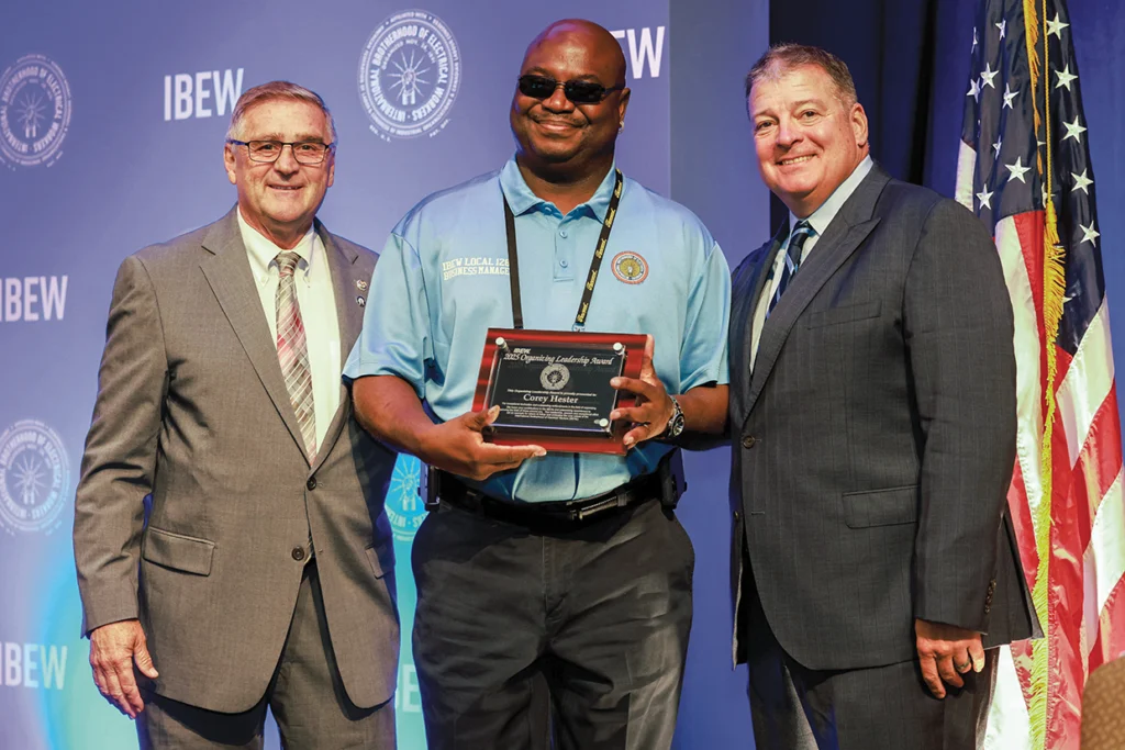 Also at this year’s conference, Memphis, Tenn., Local 1288’s Corey Hester was named Professional & Industrial Organizing Business Manager of the Year because of his focus on bringing new hires into the IBEW and bringing back members who left. After years of declining numbers, Hester and his team brought in 91 new members over the past year, momentum that gives Local 1288 high hopes for the future.