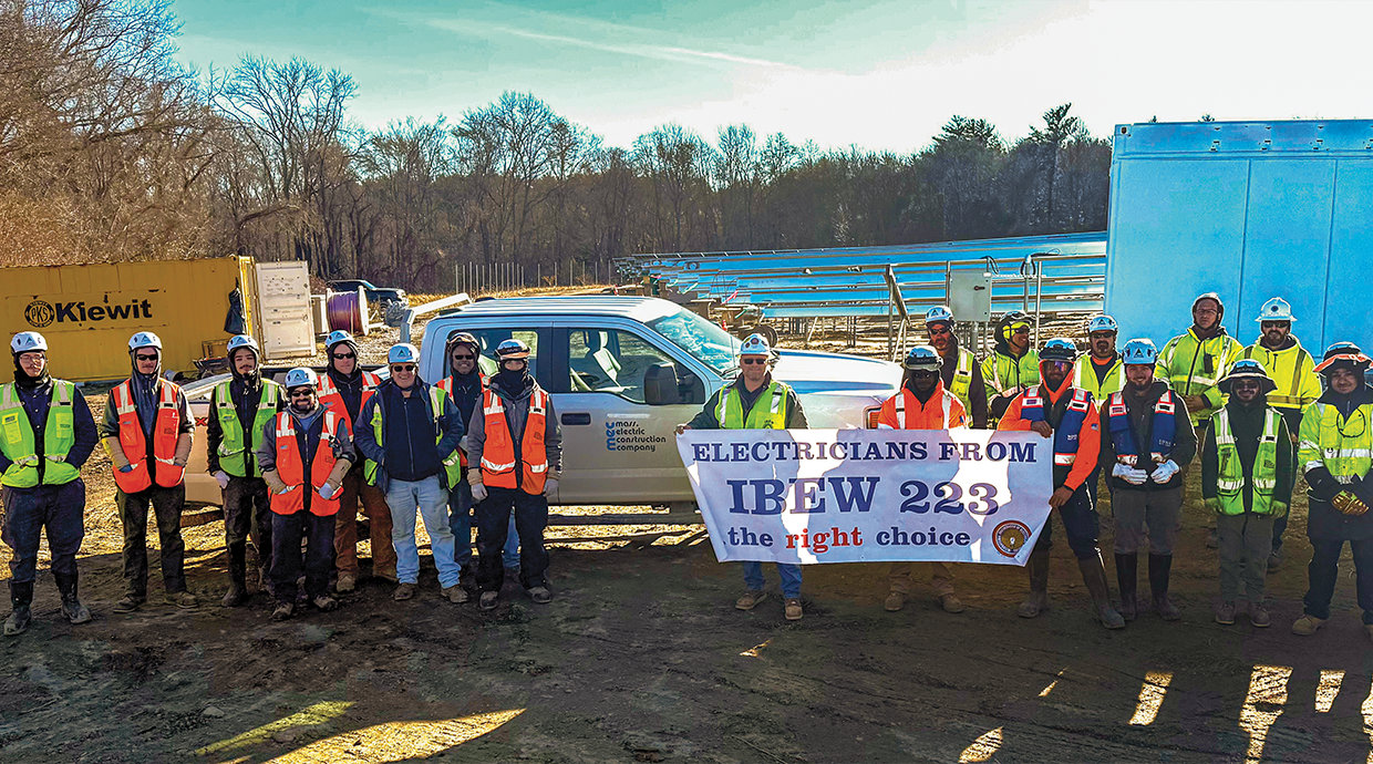 L.U. 223 (em,govt&i), BROCKTON, MA — Our local has been working solar projects in southeastern Massachusetts for nearly 15 years. With the loss of 10-plus years of offshore wind work due to actions taken by the current administration in Washington, D.C., it’s good to have dependable local contractors like Mass Electric Construction Co. continuing with available solar work in our area.