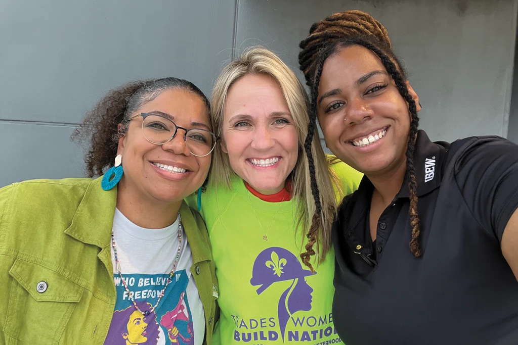 The Sparky Sisters are in the process of getting credentialed as a formal IBEW Women’s Committee, and they’re building a strong foundation for it now. They’re doing direct outreach at apprenticeship orientations and using group texting and conversations at the hall, sharing the energy and information they gained from Tradeswomen Build Nations.
