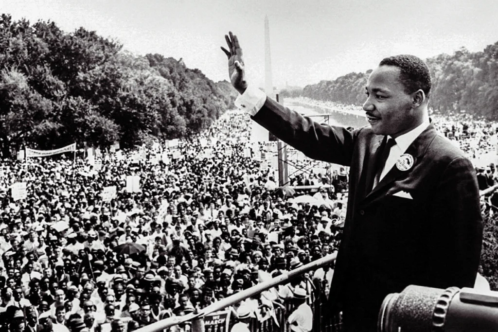 Dr. Martin Luther King Jr., seen here at the Lincoln Memorial during his “I Have a Dream” speech in 1963, made clear that labor rights were central to the Civil Rights Movement.