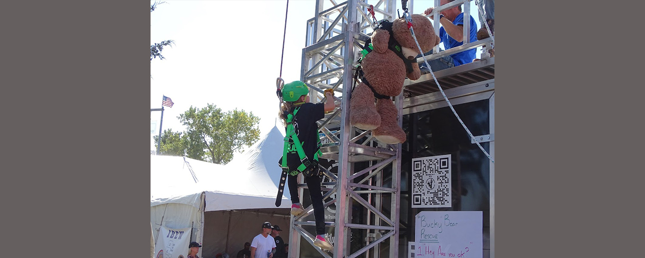 Kids competed in either the “First Step Apprentice” category for 8- to 10-year-olds or the “Future Lineman” category for 11- to 13-year olds. The two main events were a tower rescue involving a giant teddy bear named Bucky and a confined-space search and rescue. Conducy said he heard a lot of stories of fathers practicing at home with their sons and daughters before traveling to the event together.