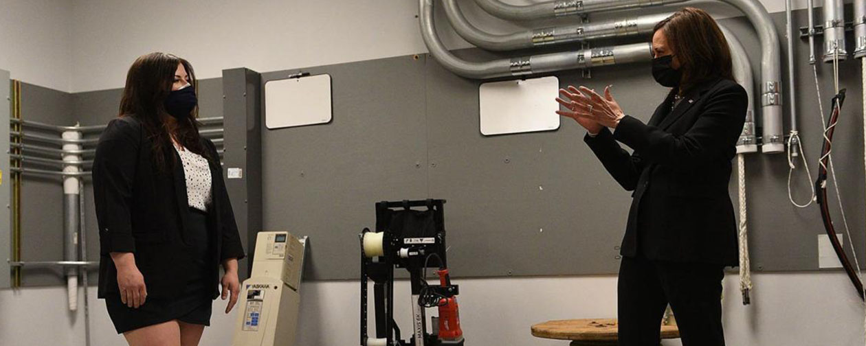 Vice President Kamala Harris visited Dover, N.H., Local on April 23 to promote the American Jobs Plan, which includes funding for skilled construction training. Harris visited with Local 490 officials and members and toured its training center while accompanied by elected leaders from New Hampshire. She later gave about a 15-minute address.