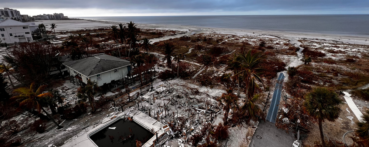 Hurricane Ian’s epic storm surge devoured some of Estero Island’s beachfront homes while winds turned many other houses and businesses into matchsticks. Credit: lineman Kellen Lewis, West Palm Beach Local 1191.