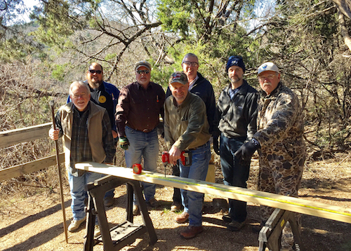 | Volunteers with the Union Sportsmens’ Alliance, including Dallas-Ft.Worth, Texas, Local 20 Assistant Business Manager Phillip Parker, left, and Business Manager Karsten Frentrup, second from the right, helped repair part of Cedar Hill State Park in February. |