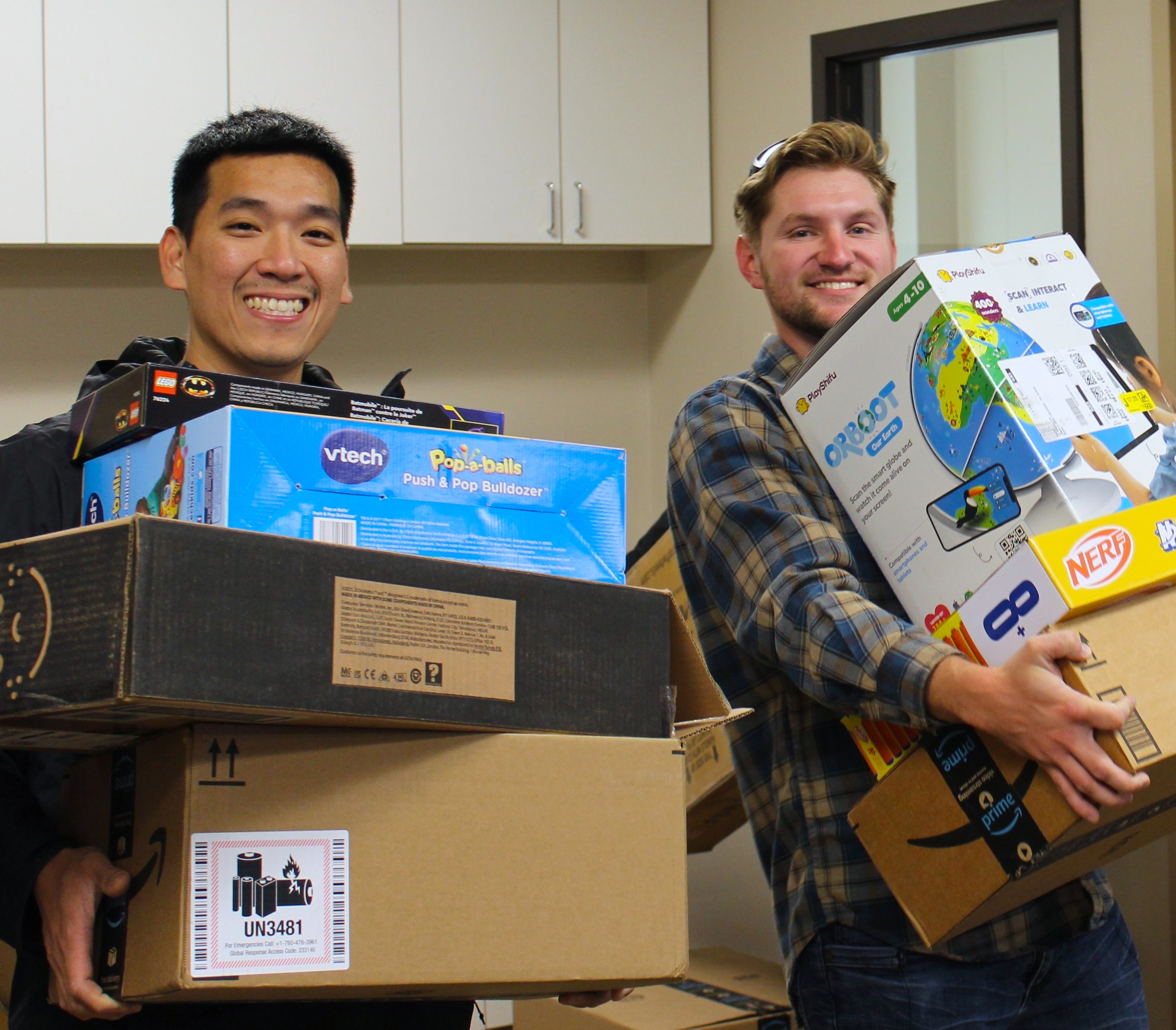 Getting a head start is key. In September, Ries began delivering the familiar white cardboard boxes to IBEW jobsites, politicians’ offices, shopping centers and other high-traffic locations. By Halloween, Local 654’s executive boardroom was overflowing with the early donations he’d retrieved. Meanwhile, staff rushed to deck their hall in Christmas colors for the big event two days later.
