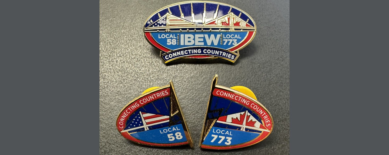 A beam at the bridge’s midpoint bears the signatures of tradespeople who have worked on it. And for IBEW members, there’s a Local 58-Local 773 pin to commemorate the project.
