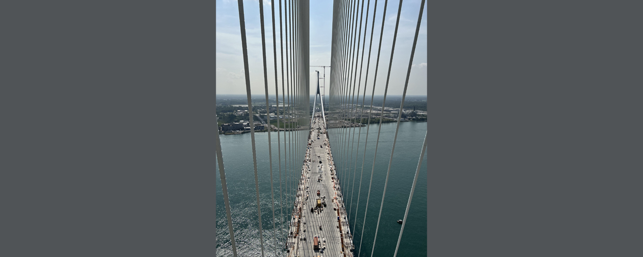 Roughly 400 members from Local 58 and Windsor Local 773 have worked on all components of the project so far, laying miles of conduit, sometimes at heights of more than 700 feet. Once complete, the 1.5-mile-long bridge, named after the famed Detroit Red Wings hockey player and designed to resemble to a hockey stick, will be the longest cable-stayed bridge in North America.
