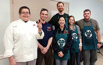 | Members of Washington, D.C., Local 26’s apprentice club recently volunteered their time at the Shepherd’s Table, a Silver Spring, Md., soup kitchen. Members Adam Reed, second from the left, Kevin Johnson Jr., Tarn Puvapiromquan, and Chris Drexel pitched in. |